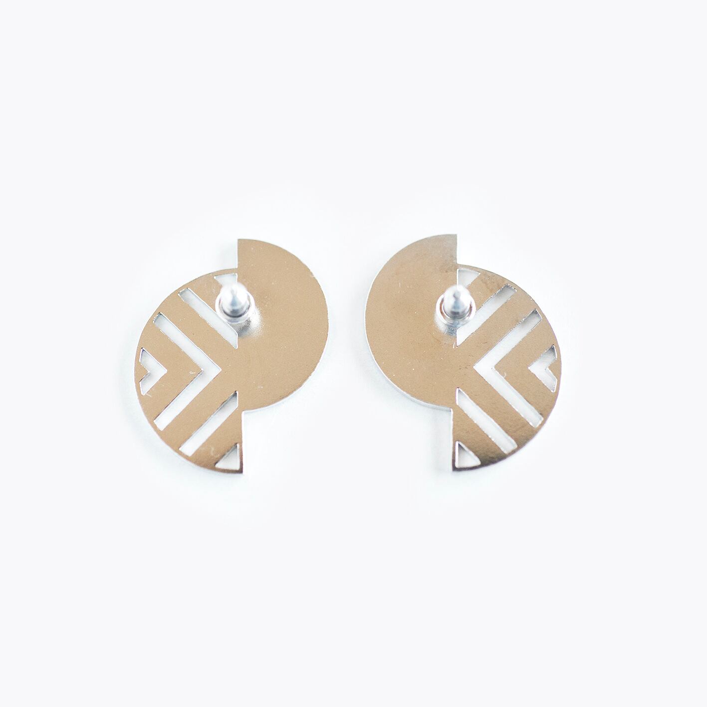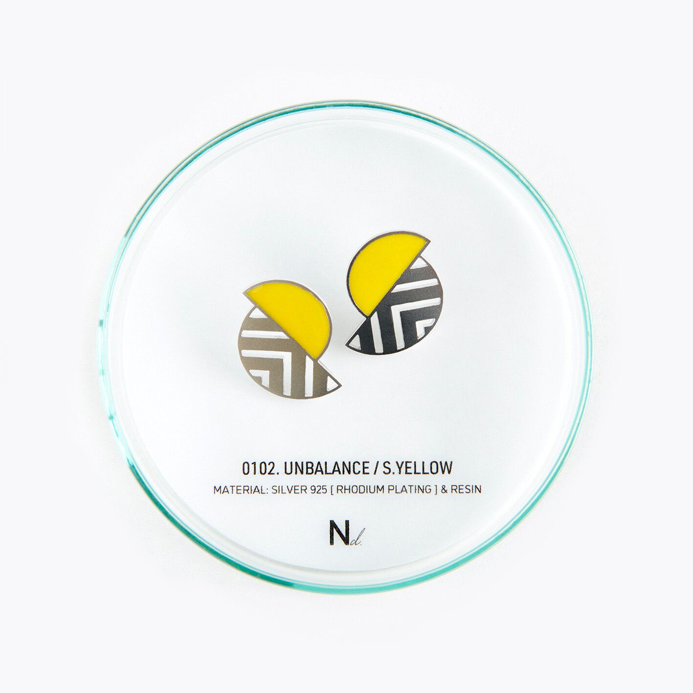 サイズの異なる2つの半円をアンバランスにレイアウト。
