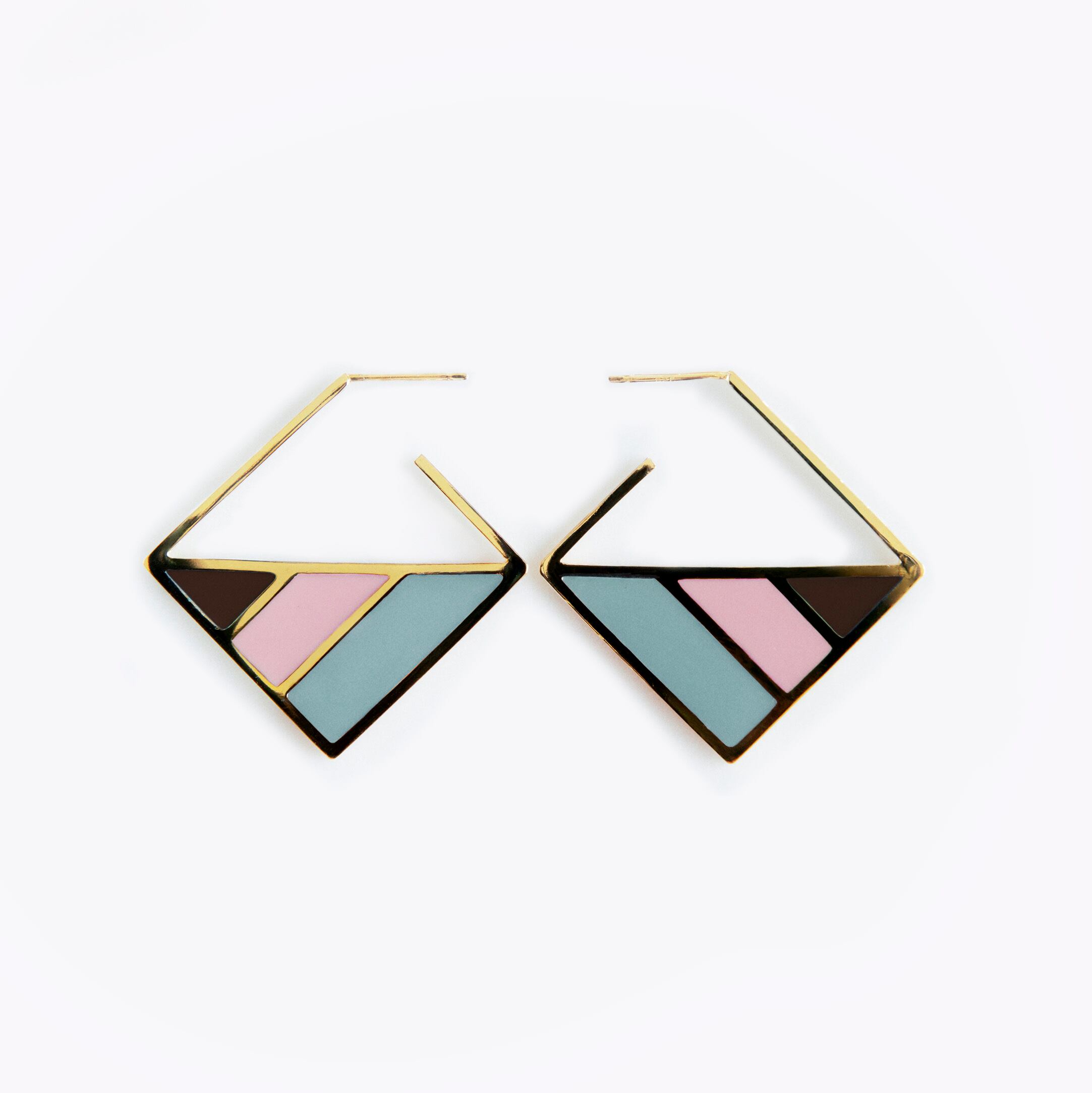 3色のストライプが耳に映えるピアス。