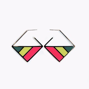 3色のストライプが耳に映えるピアス。